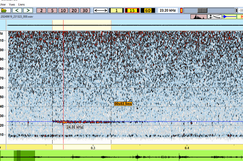 Salut Cédric, les cris de rat ne sont pas audible à cette fréquence ! Mais du coup si c'est bien une Noctule, juste avec une FME à 23 kHz on ne peut pas séparer les 2 espèces, il faut d'autres mesures et là, la durée n'est pas mesurable sur ce cri...